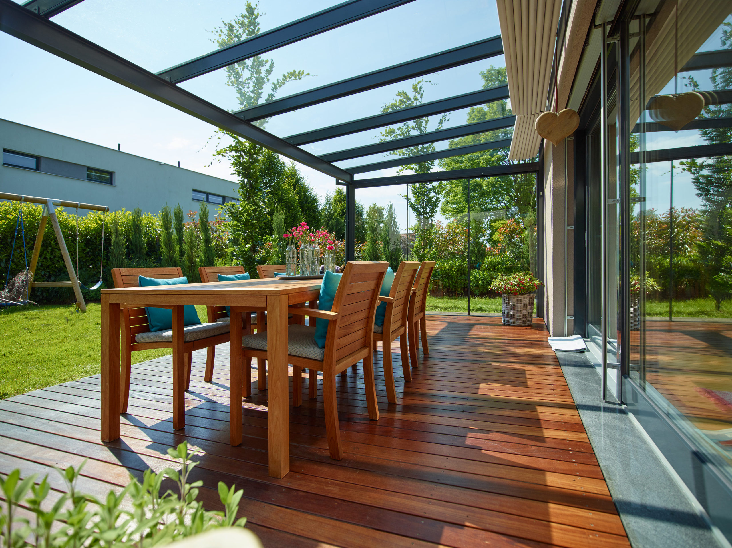 Moderne und zeitlose Sitzplatzgestaltung: Beim Projekt P durften wir eine Dachverglasung mit seitlicher Schiebeanlage planen und umsetzen. Dadurch hat die Familie einen eleganten Platz zum Verweilen in den Sommermonaten sowie Schutz für Möbel und Holzboden in den kälteren Monaten gewonnen. Ein unscheinbarer Außenbereich wurde so in eine einladende Raumerweiterung umgestaltet – ein echter Mehrwert für Familie und Immobilie.