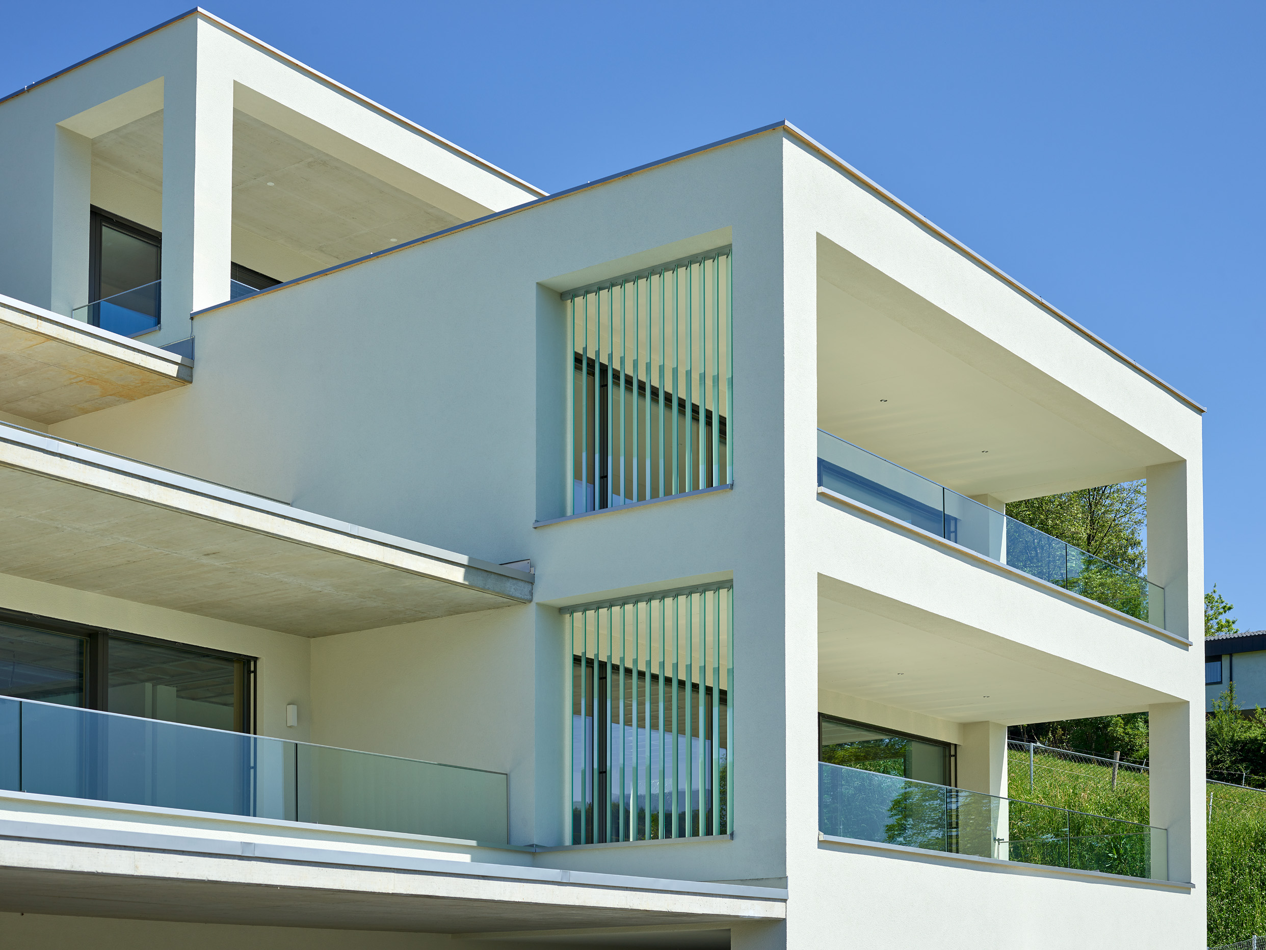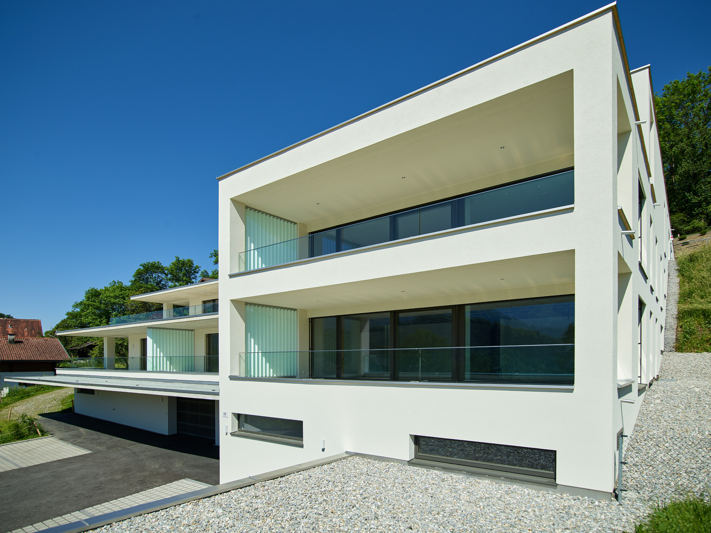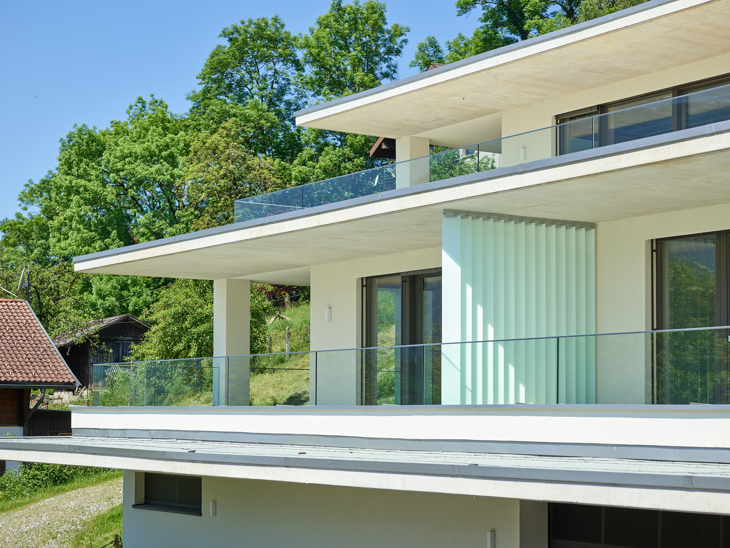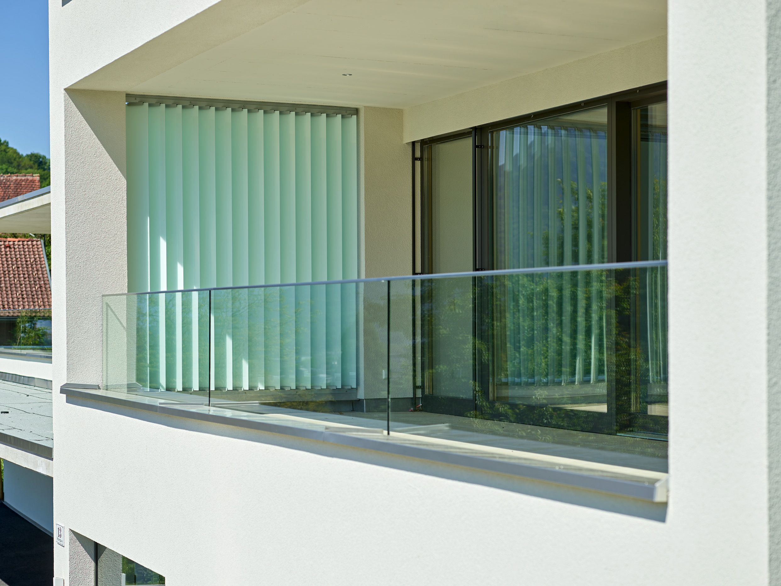 In der Wohnanlage Weinbergresidenzen in Feldkirch realisierten wir elegante Ganzglasgeländer, die maximale Sicherheit bieten, ohne die Aussicht einzuschränken. Die Gläser sind in einer stabilen Stahlkonstruktion fixiert und kommen ohne zusätzliche mechanische Sicherung aus. Ein dezenter Edelstahlhandlauf sorgt für eine perfekte Ausrichtung der Glaselemente, ohne die Optik zu beeinträchtigen. So genießen die Bewohner ihre spektakuläre Aussicht – selbst im Sitzen.
