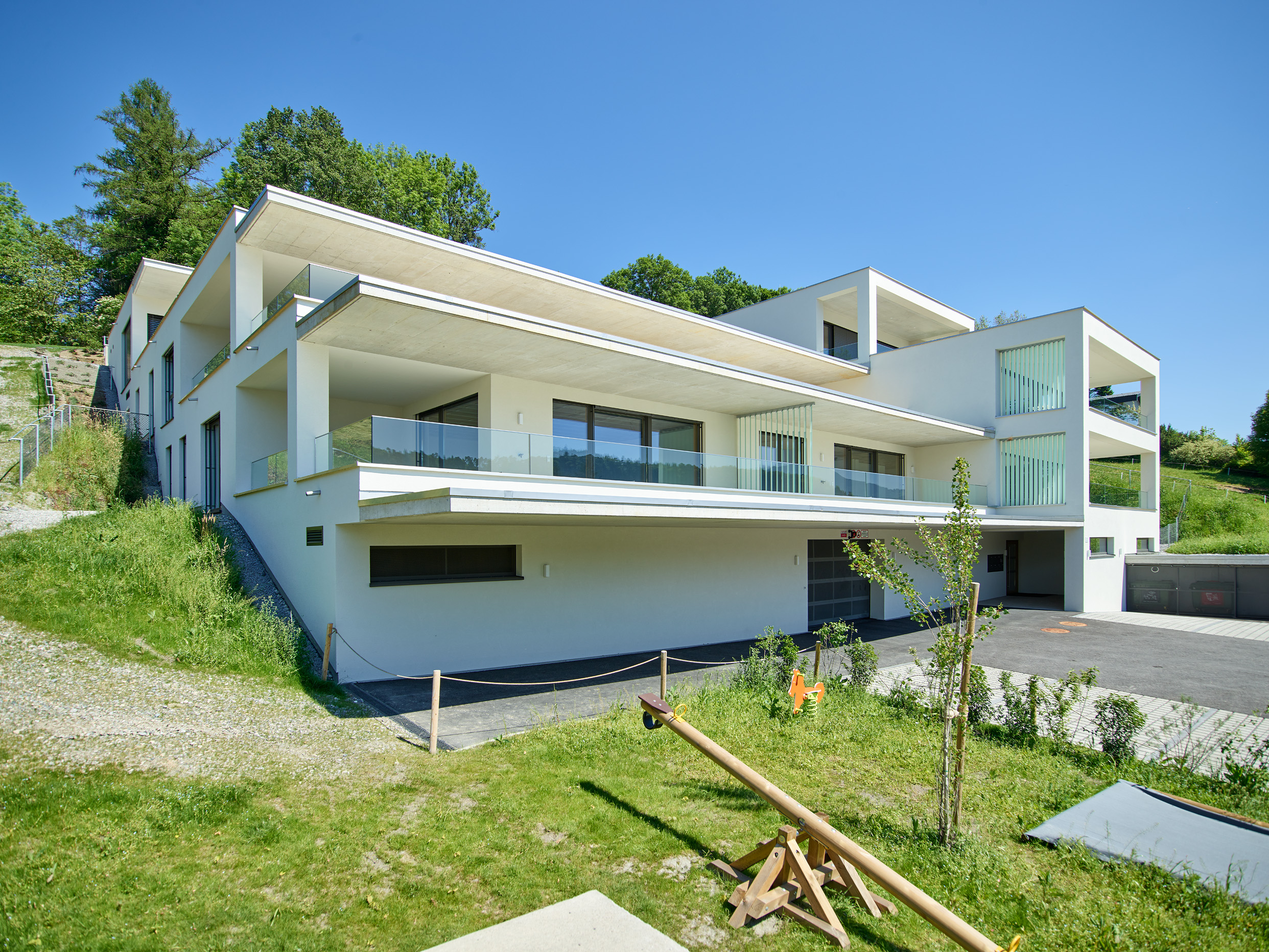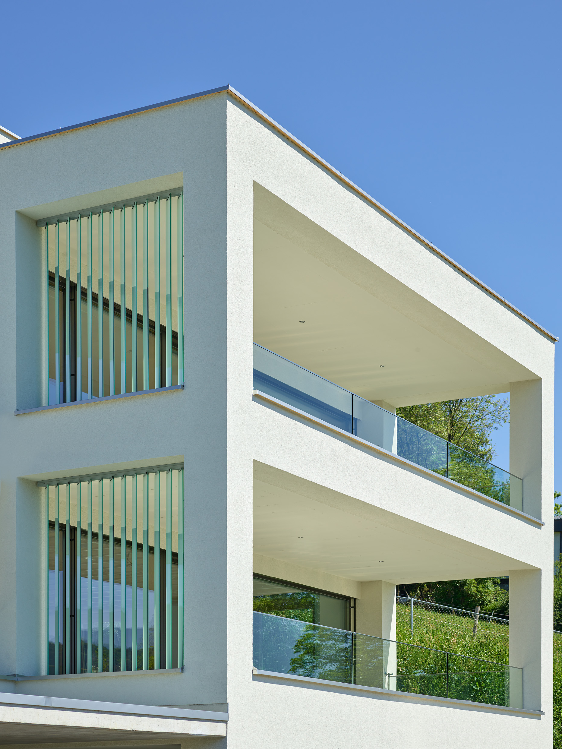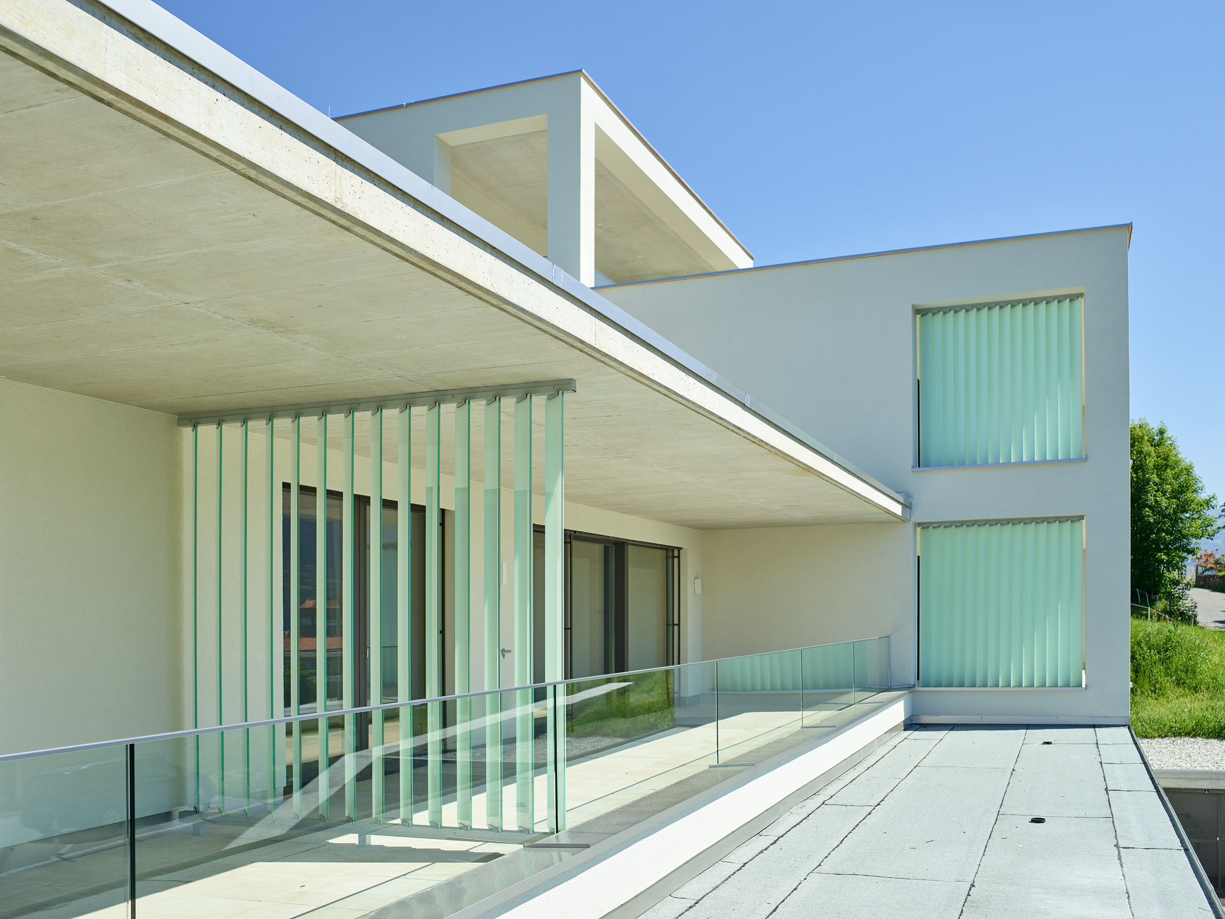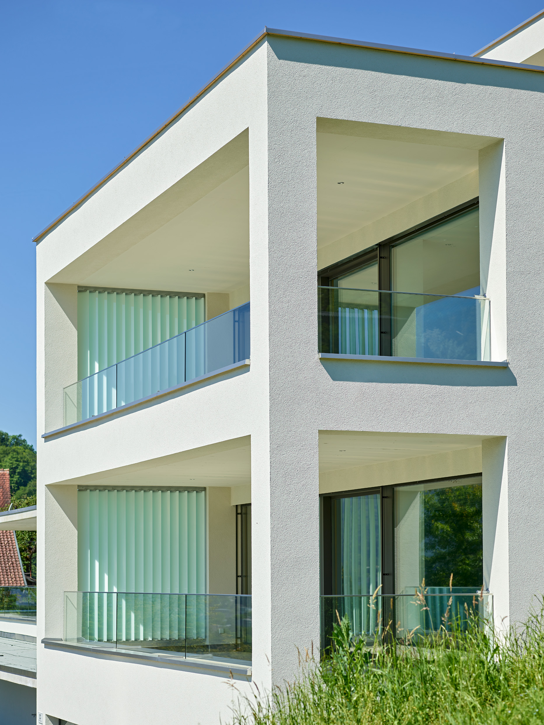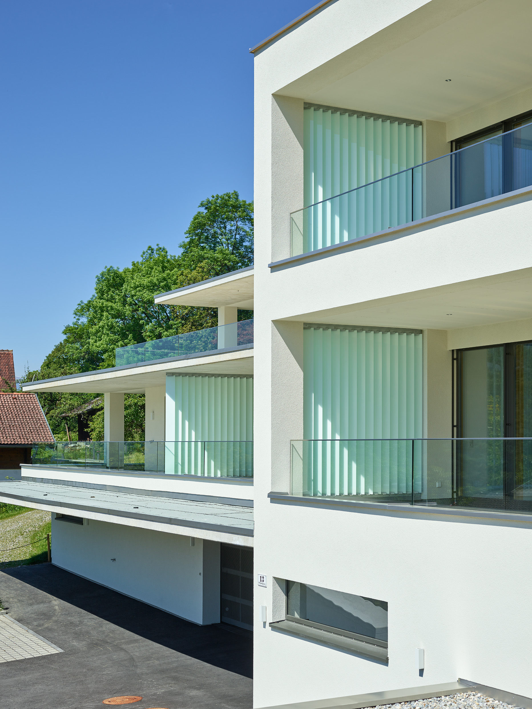 In der Wohnanlage Weinbergresidenzen in Feldkirch realisierten wir elegante Ganzglasgeländer, die maximale Sicherheit bieten, ohne die Aussicht einzuschränken. Die Gläser sind in einer stabilen Stahlkonstruktion fixiert und kommen ohne zusätzliche mechanische Sicherung aus. Ein dezenter Edelstahlhandlauf sorgt für eine perfekte Ausrichtung der Glaselemente, ohne die Optik zu beeinträchtigen. So genießen die Bewohner ihre spektakuläre Aussicht – selbst im Sitzen.